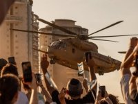 An IDF helicopter bringing a hostage home, on Monday. Once the goal of returning hostages was achieved, the "other Israel," like postwar "good Germans," risks becoming a voyeuristic elite, unable to convert moral consciousness to political action. Credit: Itai Ron
